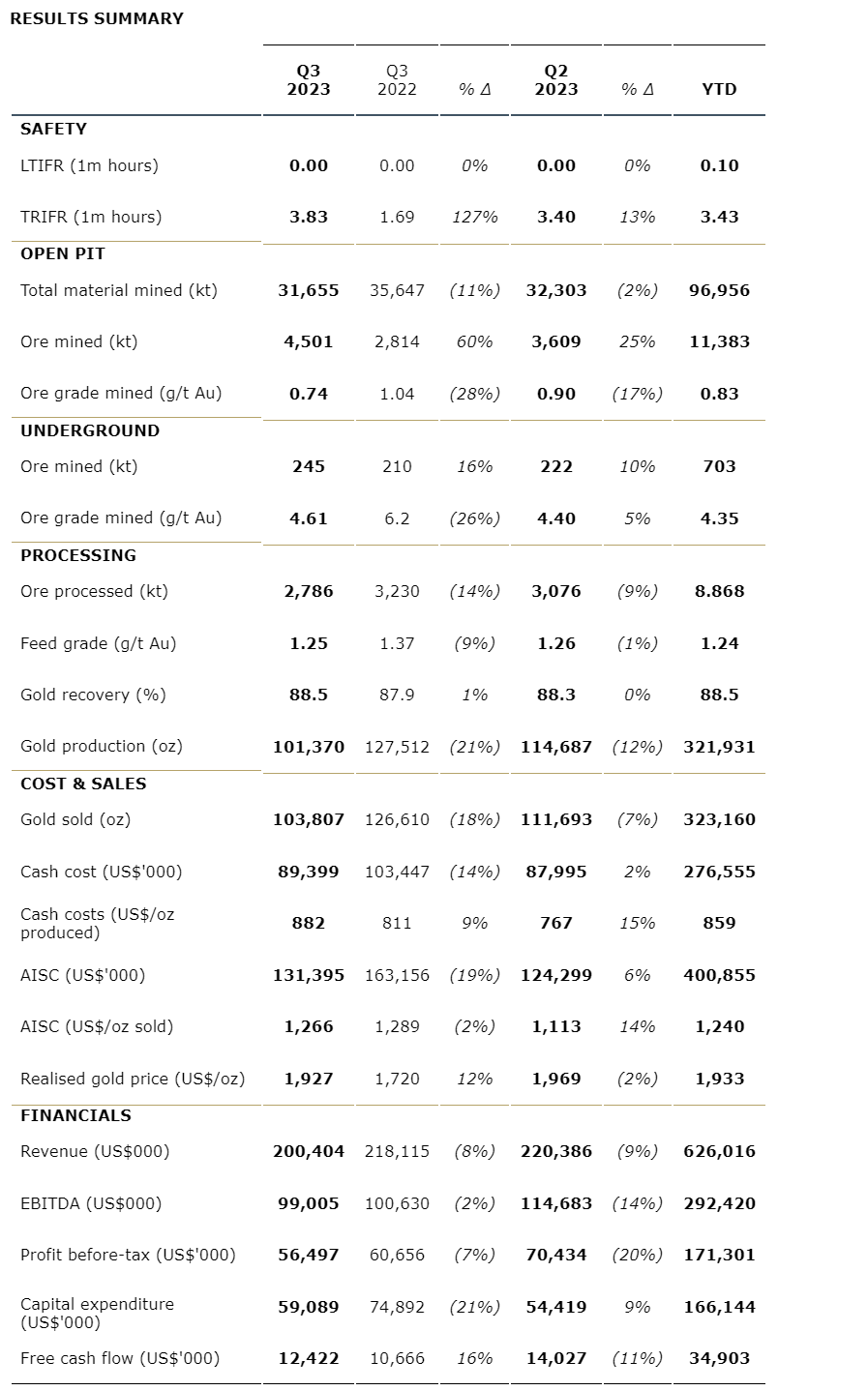 Sukari gold mine, Egypt (Q3 2023 versus Q3 2022)