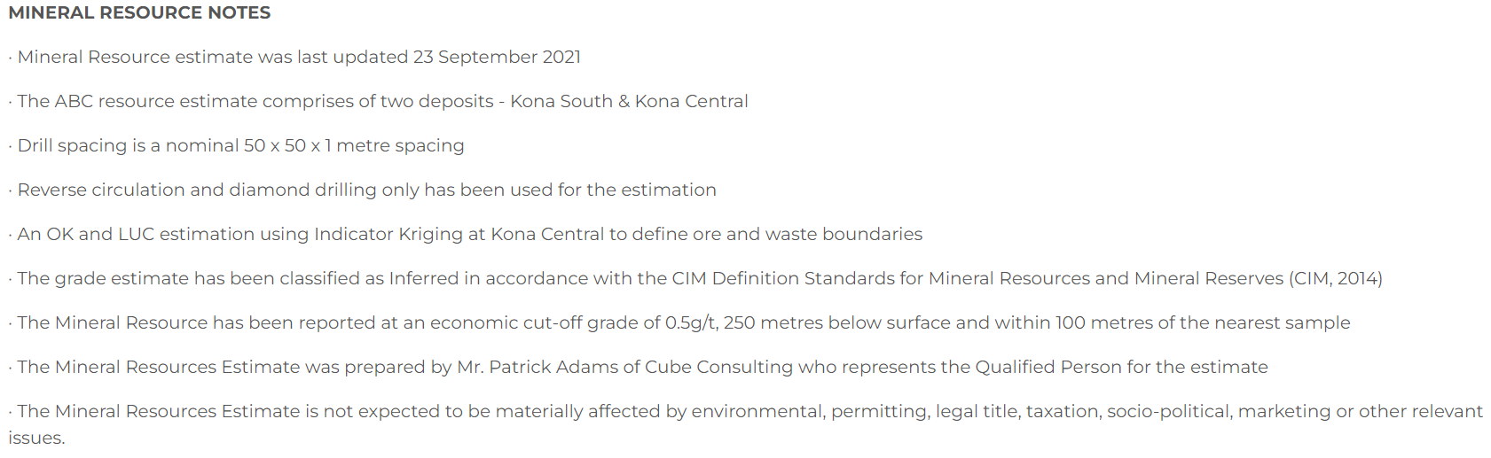 - Mineral resource -- Patrick Adams of Cube Consulting.