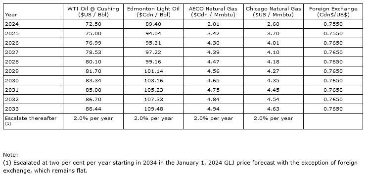 Coelacanth's Dec. 31, 2023 reserves as prepared by GLJ effective Dec. 31, 2023 and based on the GLJ (2024-01) future price forecast are as follows: