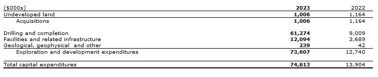 While reserves booked in 2023 are significantly greater than in 2022, the aerial extent of the bookings comprise less than 7 per cent of Coelacanth's approximately 97,300 acres of Montney land holdings in the Two Rivers area.