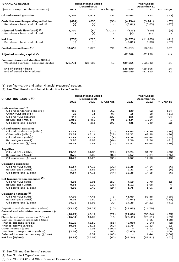 Financial and operational results below present the carved-out historic financial position, results of operations and cash flows of Leucrotta's Two Rivers Assets for all prior periods up to and including May 31, 2022 and the results of operations from May 31, 2022 forward include the results of Coelacanth after assuming the Two Rivers Assets upon close of the Arrangement.