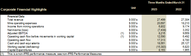 Net loss for the three months ended March 31, 2023 was $7.4 million, as compared to a $3.4 million net income for the three months ended March 31, 2022, a difference of $10 million. The decrease in net income is primarily a result of an increase in tax expense of $2 million, a non-cash remeasurement loss on the secured notes and stream of $2.6 million, an increase in finance expense of $2.2 million and an increase in general and administrative expenses of $1.6 million recorded in the first quarter of 2023 as compared to the first quarter of 2022.