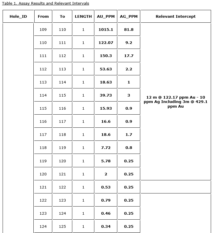 CERRADO INTERCEPTS BONANZA GOLD GRADES OF 122.2 G/T AU OVER 12 METERS AT ITS MINERA DON NICOLAS PROJECT