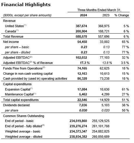 CES ENERGY SOLUTIONS CORP. ANNOUNCES STRONG Q1 2024 RESULTS WITH RECORD REVENUE AND ADJUSTED EBITDAC AND DECLARES CASH DIVIDEND