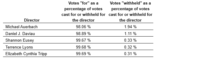 Shareholders also voted on the election as directors of nominees proposed by management as shown in the attached table.