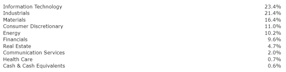 The sector weightings of CGI's investment portfolio at market as of June 30, 2023, were as shown in the associated table.
