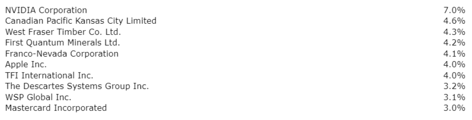 The top 10 investments, which comprised 41.5 per cent of the investment portfolio at market as of June 30, 2023, were as shown in the associated table.