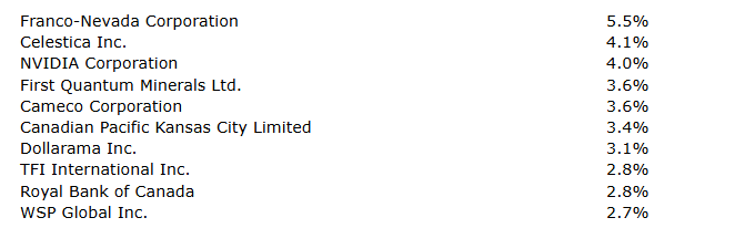 The top 10 investments which comprised 35.6 per cent of the investment portfolio at market as of Feb. 28, 2026, were as shown in the attached table.