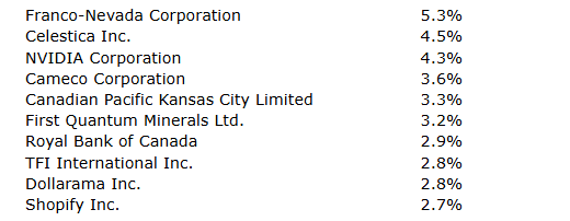 The top 10 investments which comprise 35.4 per cent of the investment portfolio at market as of March 31, 2026, were as shown in the attached table.
