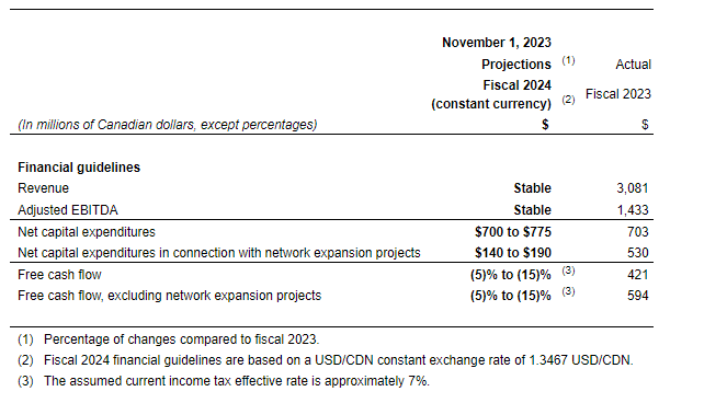 Cogeco is releasing its fiscal 2024 financial guidelines;