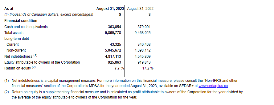 Profit for the period amounted to $90.5-million, of which $29.2-million, or $1.87 per diluted share, was attributable to owners of the corporation compared with $111.4-million, $36.4-million and $2.31 per diluted share, respectively, in the comparable period of fiscal 2022. The decreases in profit for the period and profit attributable to owners of the corporation resulted mainly from higher financial expense, depreciation and amortization expense, and acquisition, integration, restructuring, and other costs, partly offset by the impact of the appreciation of the United States dollar.