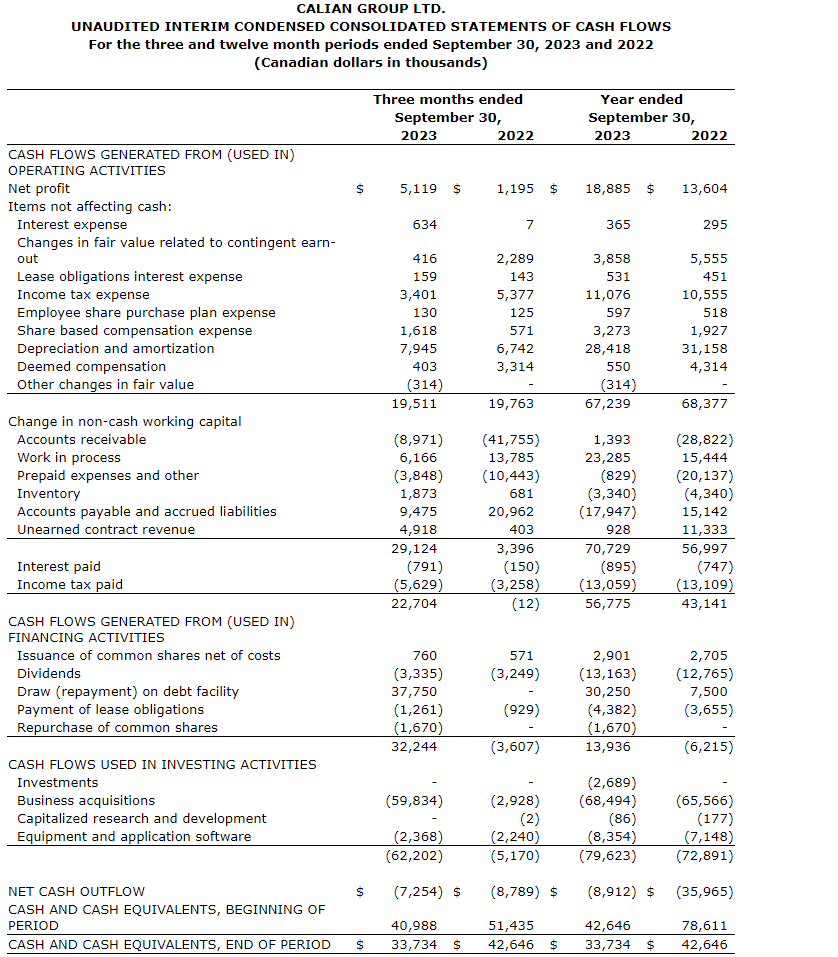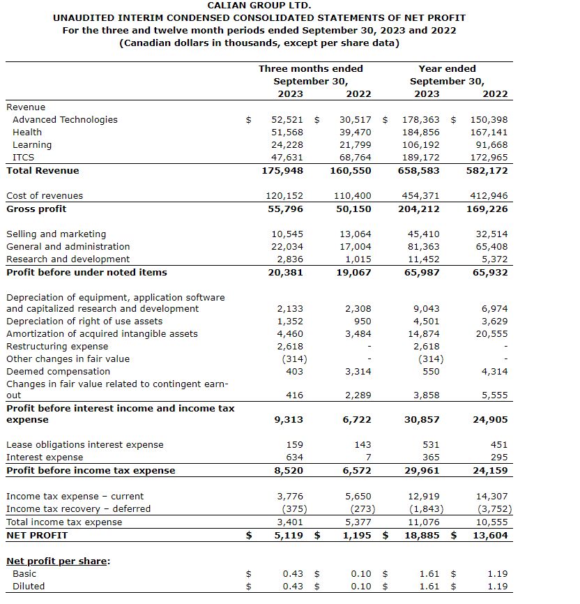 Calian Group Ltd. today released its unaudited results for the fourth quarter and FY23 (fiscal 2023) ended Sept. 30, 2023.