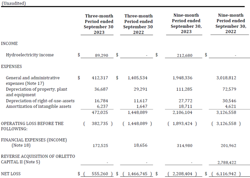 Charbone Hydrogen Corp. has released its financial highlights for the nine-month period ended Sept. 30, 2023.