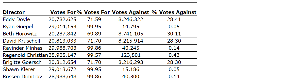 The nominees listed in the management information circular for the 2023 annual general and special meeting of shareholders have been elected as directors of Canada Jetlines Operations Ltd. Detailed results of the vote for the election of directors held at the annual general and special meeting on June 29, 2023, in Mississauga, Ont., are set out in an attached table.