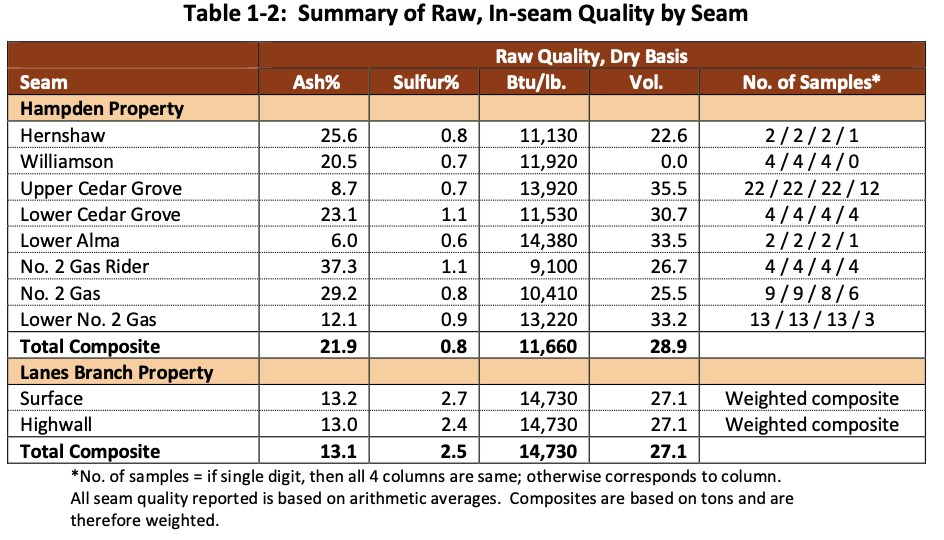 Please see the technical report in respect of the ARI project entitled "Pre-Feasibility Technical Report on the Coal Resource and Coal Reserve Controlled by Active Resources Inc., West Virginia, USA -- Prepared in Accordance with National Instrument 43-101 for Disclosure for Mineral Projects" dated Dec. 15, 2025, with an effective date of June 30, 2025, for further details, which is available for review under the company's SEDAR+ profile.