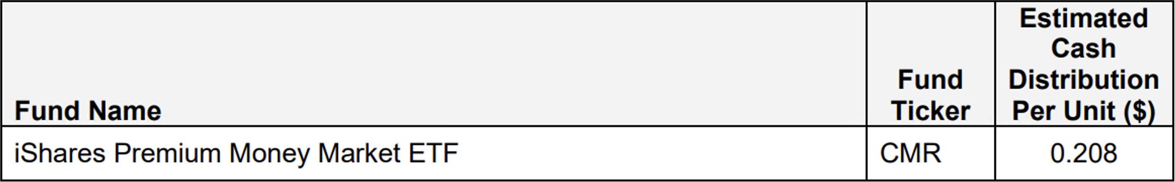 Estimated October cash distribution for iShares Premium Money Market ETF