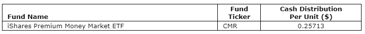 BlackRock Asset Management Canada Ltd., an indirect, wholly owned subsidiary of BlackRock Inc., has declared the final December, 2023, cash distributions for the iShares Premium Money Market ETF. Unitholders of record on Dec. 29, 2023, will receive cash distributions payable on Jan. 4, 2024.