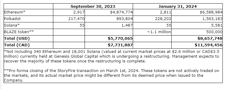 - Total year-end digital assets and cash of $9.5-million or $12.7-million (Canadian).