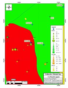 Christopher Huggins, Chief Executive Officer of Collective, commented, “The Trojan-Condor Corridor continues to return elevated to highly anomalous surface geochemistry and porphyry-style alteration (i.e., chlorite, epidote and sericite) spatially associated with numerous geophysical anomalies identified on the basis of different geophysical methods from two separate and distinct surveys. The Company’s work in 2023 in the Trojan-Condor Corridor has confirmed previously reported elevated to high-grade copper values, supporting the area as a high priority target.”