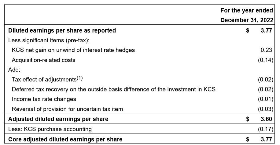 As part of its Investor Day, CPKC also issued 2023 guidance. CPKC expects core adjusted diluted EPS1 to grow mid-single digits versus 2022 core adjusted diluted EPS1 of $3.77. CPKC's reported diluted EPS was also $3.77 in 2022.