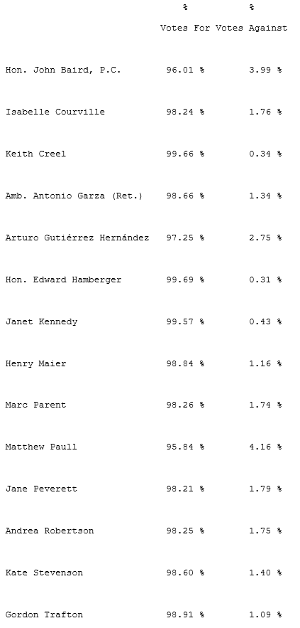Final voting results on all matters voted on at the annual meeting will be filed on SEDAR+ and EDGAR.