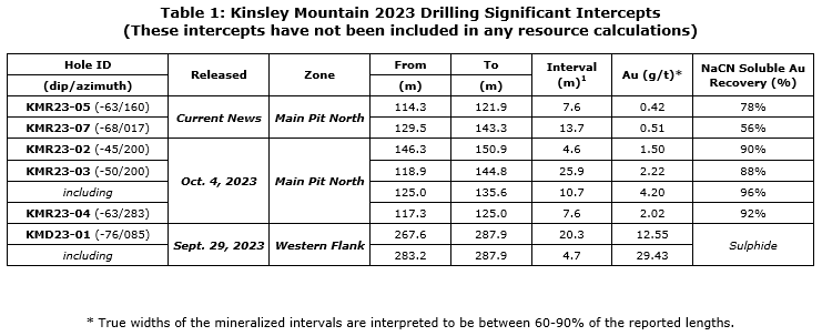 These wide oxide gold intercepts in conjunction with economically attractive shallow high-grade oxide intercepts, including 7.6 metres averaging 9.8 g/t Au in KMR20-030, multiple broad shallow oxide gold intercepts drilled by the company during 2020, in addition to the 10.7 metres averaging 4.2 g/t Au already reported in KMR23-04 this year, reaffirm the company's view that Main Pit North, in conjunction with the emerging Secret Spot target surface oxide discovery, is expected to be key oxide gold resource expansion drivers at Kinsley Mountain moving forward.