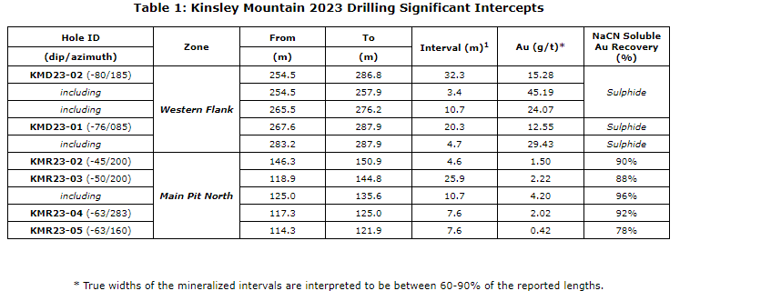 Based on exceptionally high-grade sulphide and near-surface oxide drill intercepts, including 20.3 metres averaging 12.6 grams per tonne (g/t) gold (Au), and 26 metres averaging 2.22 g/t Au, returned from its successful 10-hole, 2,287-metre 2023 Kinsley Mountain exploration campaign, the company plans to leverage its expansive exploration data set comprising over 160,000 metres of drilling, in addition to a detailed 3-D stratigraphic model, property wide soil and rock geochemistry, airborne, and ground geophysical surveys (including ground IP/resistivity, gravity and airborne VTEM/magnetics) to prepare an integrated exploratory data analysis (EDA) study.