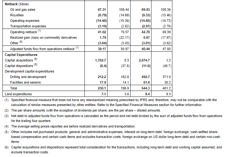 - Development capital expenditures for the quarter, which included drilling and development, facilities and seismic costs, totalled $230.1-million.