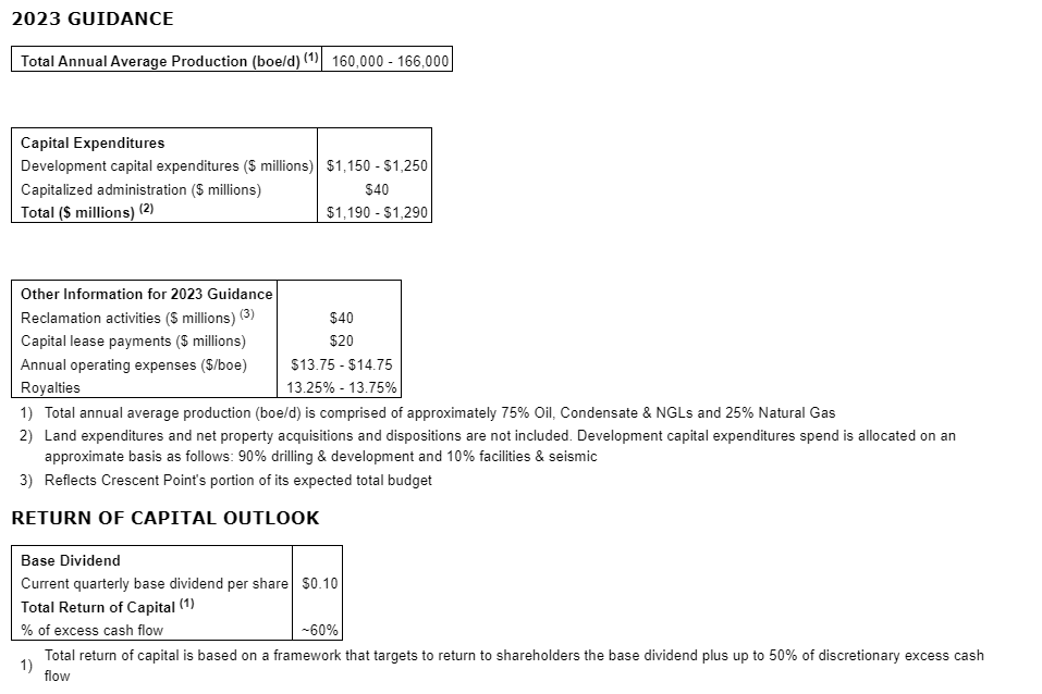Crescent Point continues to execute operationally and remains on track to meet its 2023 annual average production guidance of 160,000 to 166,000 boe/d with development capital expenditures expected to be in line with its budget of $1.15-billion to $1.25-billion.