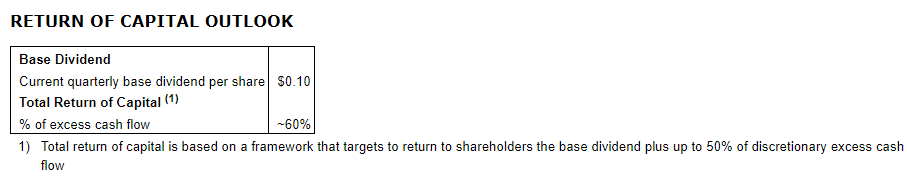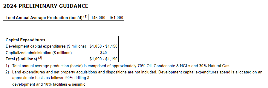 Maintaining preliminary 2024 guidance, which is expected to generate $1-billion of excess cash flow at $80 (U.S.)/bbl (barrel) WTI (West Texas Intermediate).