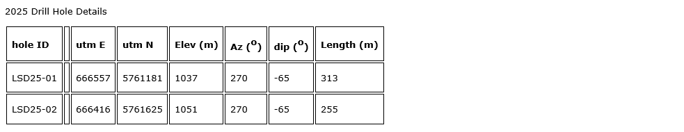 A summary of 2025 diamond drill results is provided in an attached table.