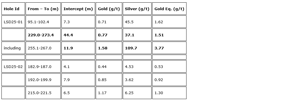 Hole LSD25-01, with an intercept of 44.4 metres (m) grading 0.77 g/t gold and 37.1 g/t silver (1.51 g/t gold equivalent), demonstrates the great potential of the road-accessible, Lightning Strike project.