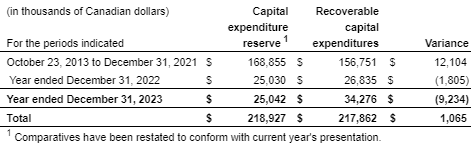 The capital expenditure reserve is a non-GAAP financial measure and management believes the reserve is a useful measure to understand the normalized capital expenditures required to maintain property infrastructure. Recoverable capital expenditures are the most directly comparable measure disclosed in the REIT's primary financial statements. The capital expenditure reserve should not be considered as an alternative to recoverable capital expenditures, which is determined in accordance with IFRS.