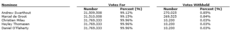 Shareholders also voted in favour of the following: (i) the ratification and appointment of Dale Matheson Carr-Hilton Labonte LLP as the auditor of the company; (ii) the adoption of the proposed new stock option plan; (iii) the adoption of the restricted share rights plan; and (iv) ratifying all previous acts by directors and officers since the last annual general meeting of the company held on June 22, 2023. Each of the resolutions approved at the meeting was described in detail in the company's management information circular dated June 9, 2025, available on SEDAR+ and the company's website.