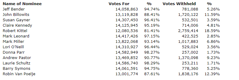 Constellation Software Inc. has released the results of the vote on directors at its May 8, 2023, annual shareholders' meeting. Each of the 13 nominees listed in the corporation's management proxy circular dated March 27, 2023, was elected as a director. Voting was conducted by ballot with the voting results as seen in the attached table.