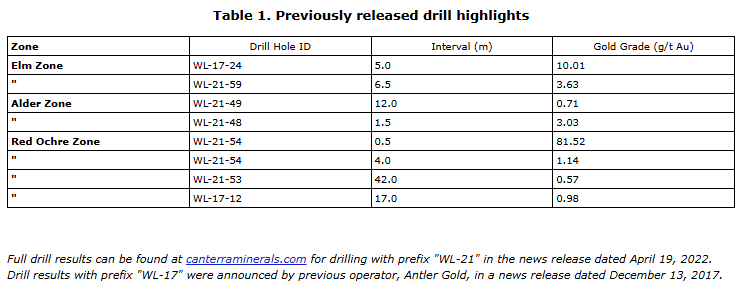 Paul Moore, PGeo, vice-president of exploration of Canterra Minerals, a qualified person as defined by National Instrument 43-101, has reviewed and approved the technical information in this press release.