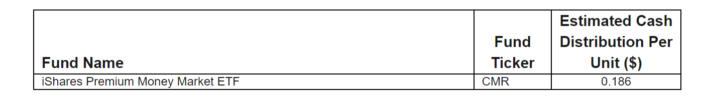 Estimated November cash distribution for iShares Premium Money Market ETF