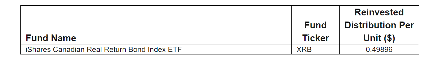 November reinvested distribution for iShares Canadian Real Return Bond Index ETF