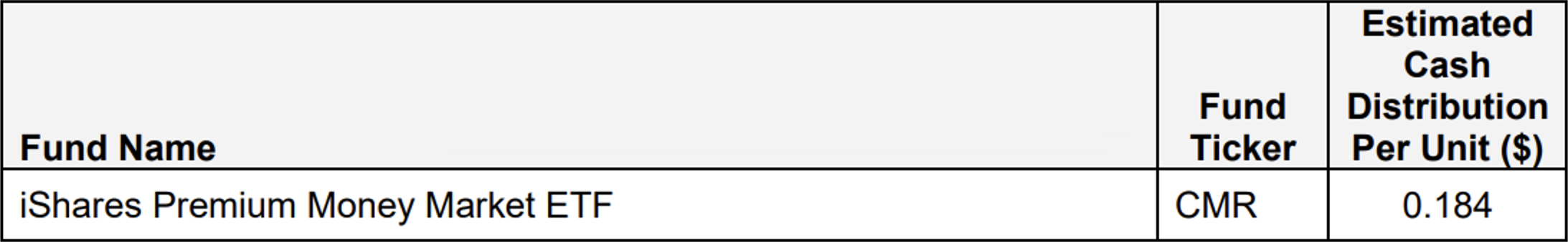 BlackRock Canada expects to issue a press release on or about July 25, 2023, which will provide the final amount for iShares Premium Money Market.