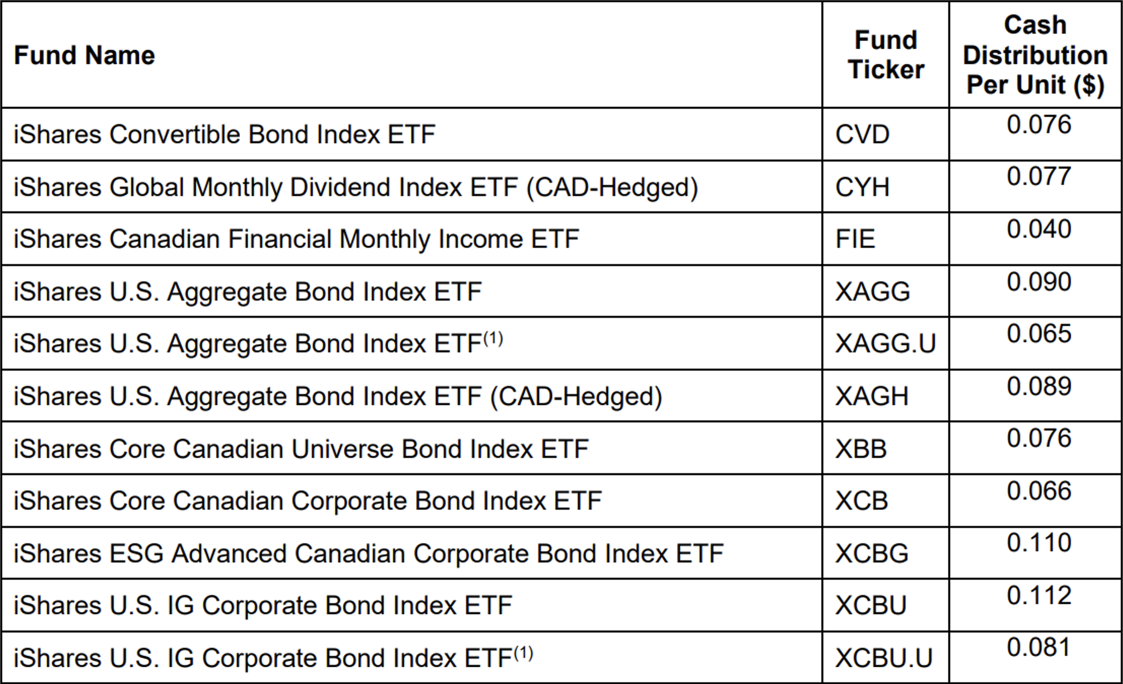 BlackRock Asset Management Canada Ltd. has declared the April, 2024, cash distributions for the iShares exchange-traded funds listed on the Toronto Stock Exchange or Cboe Canada which pay on a monthly basis. Unitholders of record of a fund on April 25, 2024, will receive a cash distribution