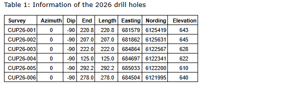 The scientific and technical information in this press release was verified by Jacquelin Gauthier PGeo, Cupani's vice-president of exploration. He is acting as the company's qualified person within the meaning of National Instrument 43-101 -- Standards of Disclosure for Mineral Projects.
