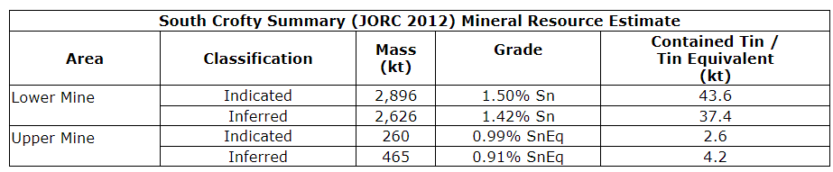 "The discovery of the Great Flat lode splay and the other new zones of high-grade tin mineralization demonstrates the exploration upside of this area, which we view as having tremendous potential to add to our current mineral resource base at South Crofty."