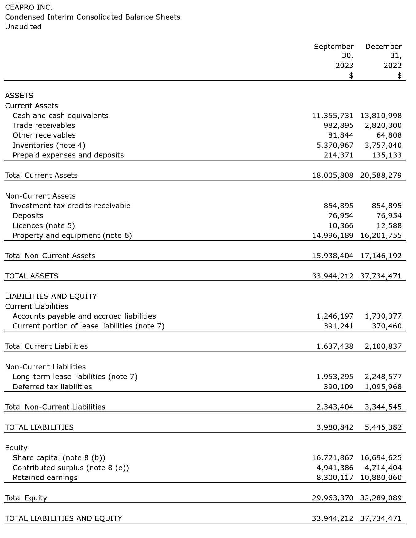 Ceapro Inc. has released its financial results and operational highlights for the third quarter and nine months ended September 30, 2023.