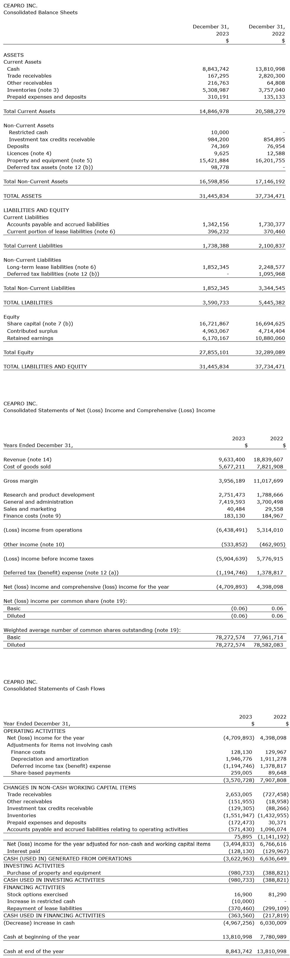 The complete financial statements are available for review on SEDAR at https://sedar.com/Ceapro and on the Company's website at www.ceapro.com.