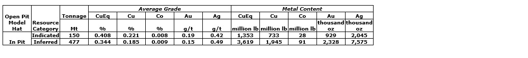The Hat deposit, located in northwestern British Columbia, is a polymetallic porphyry project with major resources of copper, gold, cobalt and the potential for scandium. As one of the region's significant sources of critical minerals, the Hat deposit has undergone targeted exploration and development. The resource estimate cut-off of 0.2 per cent copper equivalent (CuEq), as of the recently completed mineral resource estimate and the company's July 25, 2024, news release, is summarized in an attached table.