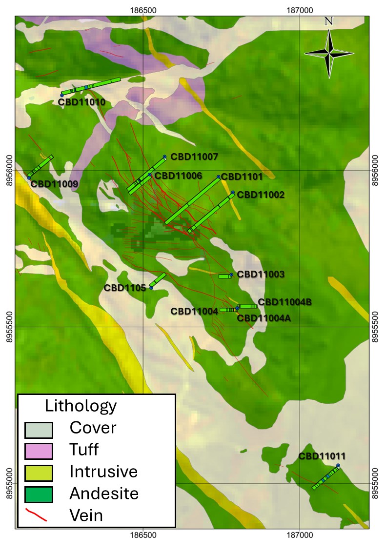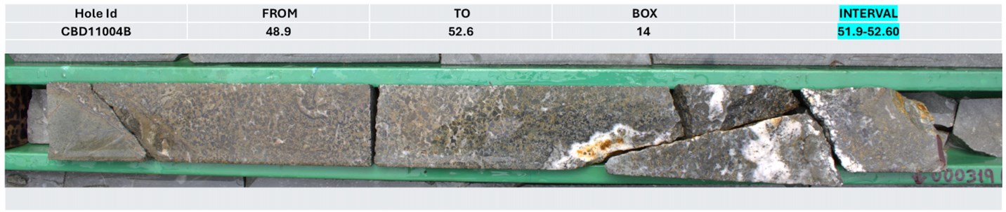 CBD11006 - 1.0 m at 8.0 g/t Au & 54 g/t Ag (8.9 g/t AuEq.‡) from 58.9m