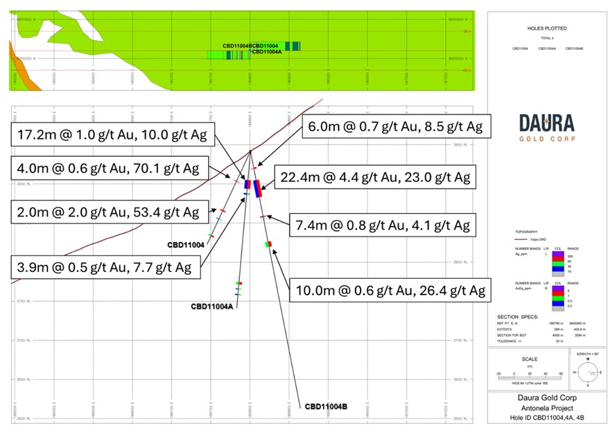 Stuart Milles, VP of Exploration for Daura, commented, "The upgraded drill intercepts at Antonella provide critical new insights into Antonella's mineralizing system, including high-value pathfinder geochemical vectors. These data are essential for targeting high-grade extensions and expansion of the Antonella deposit in the Company's future planned drill program."
