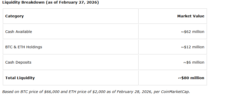 Digi Power X held cash, bitcoin (BTC), ethereum (ETH) and cash deposits of approximately $80-million as of Feb. 27, 2026.