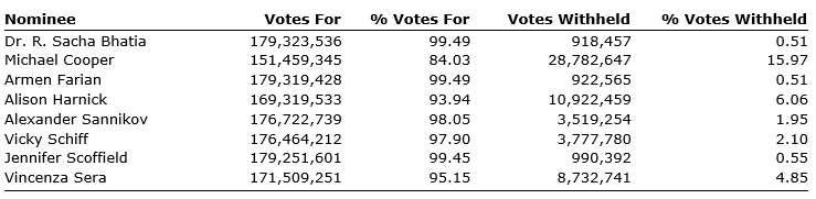 PricewaterhouseCoopers LLP 178,744,807 99.02 1,768,450 0.98