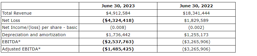 The attached table summarizes revenue, net loss, EBITDA (earnings before interest, taxes, depreciation and amortization) and adjusted EBITDA.